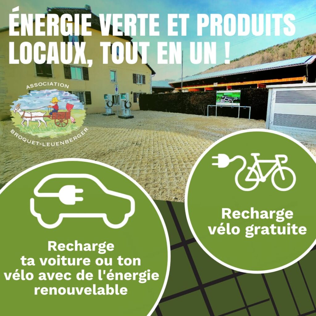 Les bornes de recharge pour vélos sont disponibles gratuitement et mises à disposition de tous les cyclistes. Elles sont situées juste à côté de notre magasin de vente directe à la ferme, offrant ainsi un point de recharge idéal, pratique et facilement accessible. Pendant que votre vélo se recharge, vous pouvez en profiter pour découvrir nos produits du terroir afin de vous ravitailler, ou encore faire le tour de notre exploitation agricole.